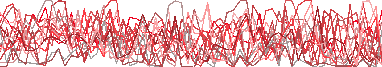 This visualization hasn't really worked (using the full range of random colors doesn't help either). The pattern of horizontal lines at about 20% utilization is only visible because those CPUs were drawn last, on top of the previous lines (you can see them at the bottom of data center visualization in the Highlighted Data section). If the CPU ordering is shuffled when drawn, those lines vanish.