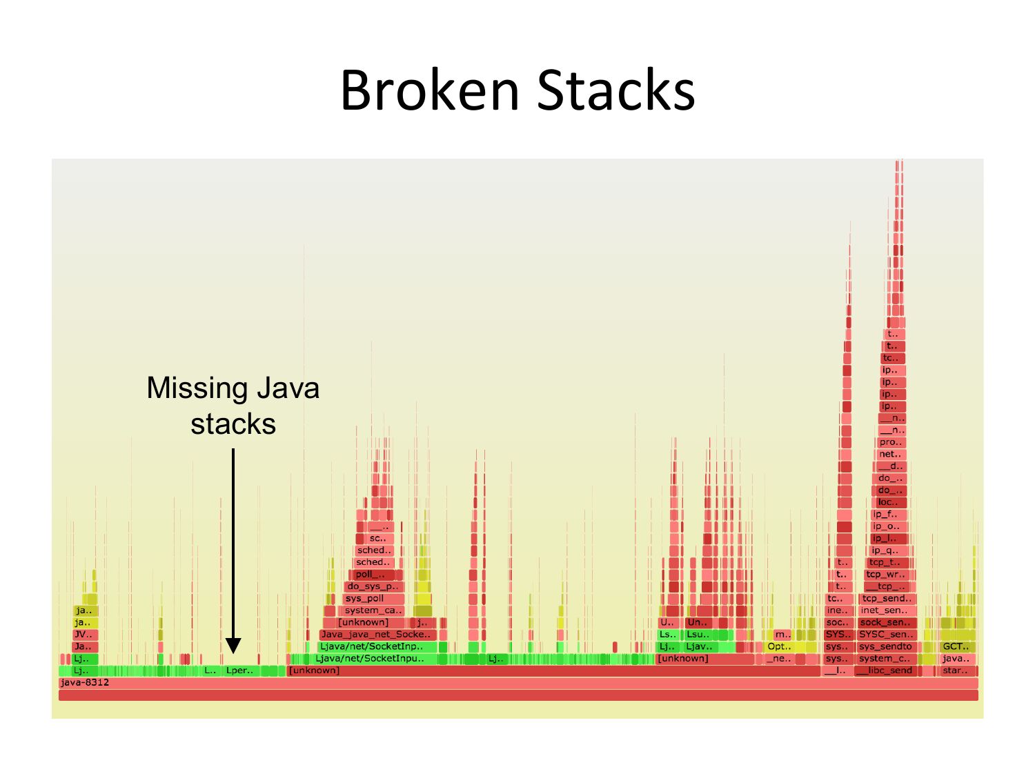 slide 10:Broken Stacks Missing Java stacksslide 11: