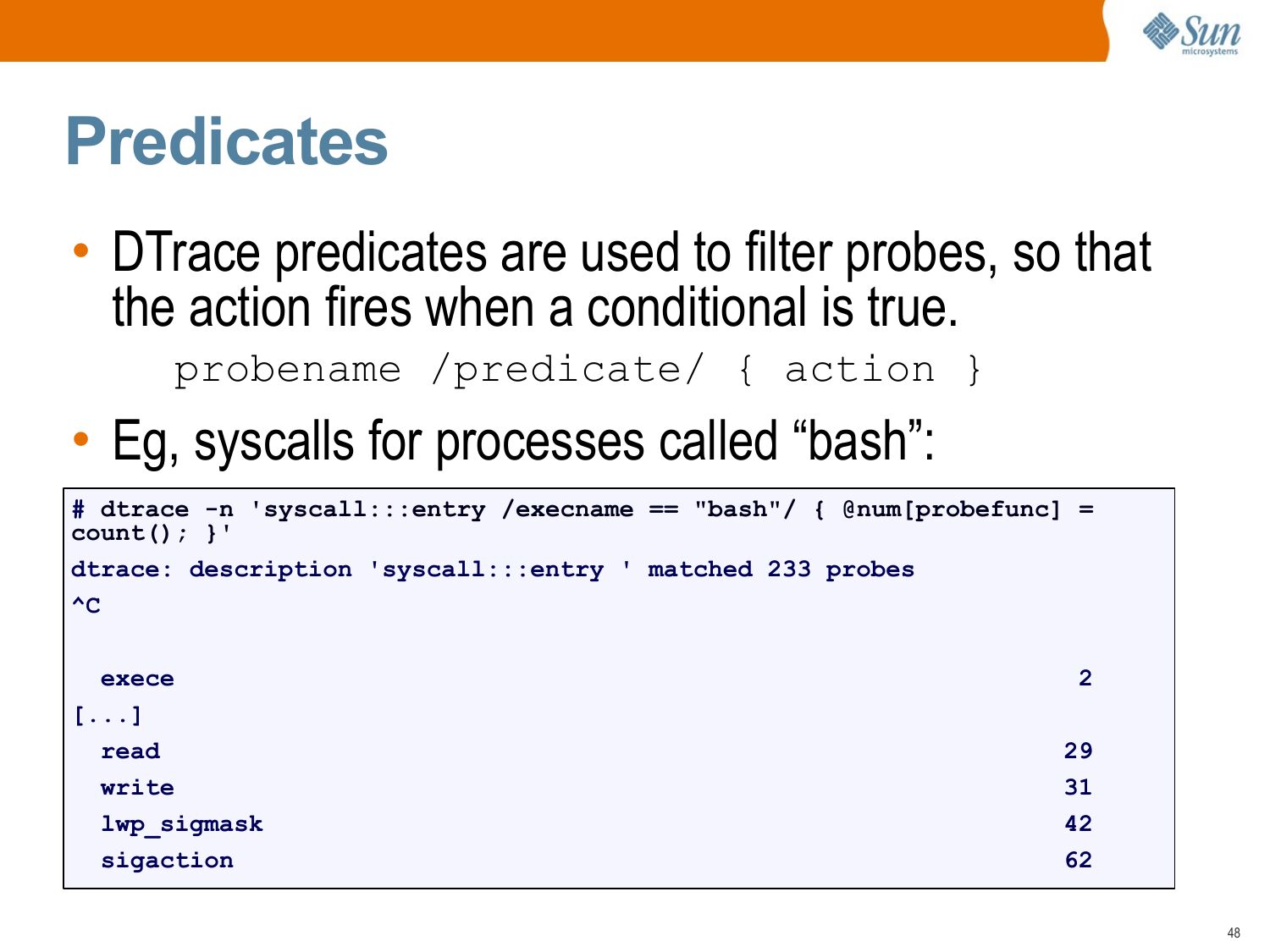 • DTrace predicates are used to filter probes, so that